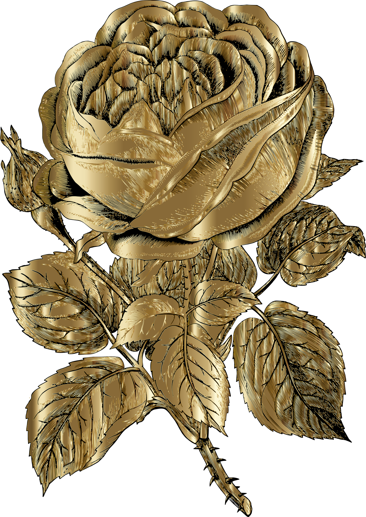 Vintage Rose Line Art Gold