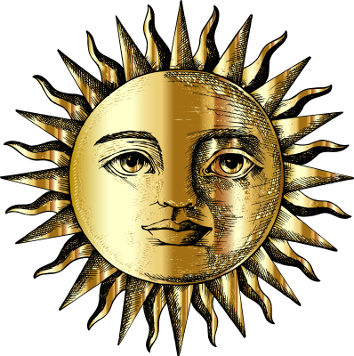 Vintage Sun Face Line Art Gold