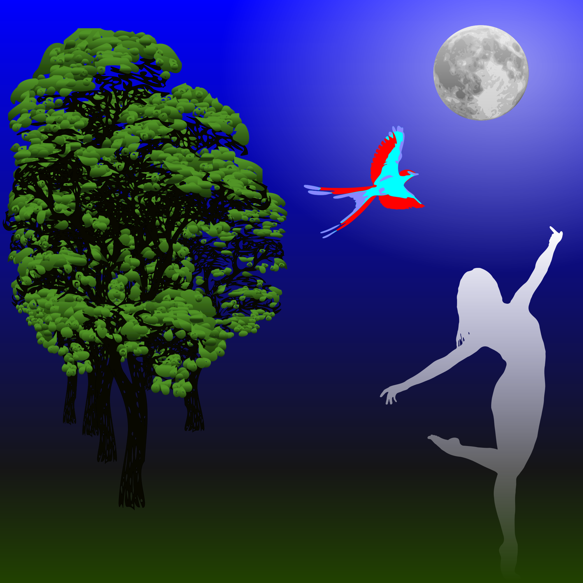 i guess the idea is that the song - and my take on it - is about the bird, so do you really notice that the trees or the moon have less detail? it may be programmer thinking...