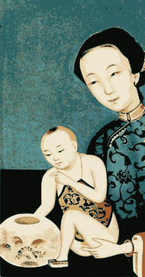 A vintage depiction of a Chinese mother with her baby