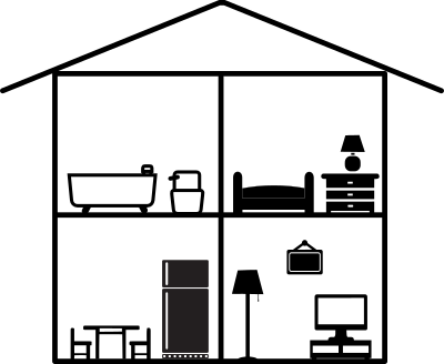 - house cut-away cut away room rooms kitchen bedroom living room bathroom toilet teaching icons diagram remix+169920 remix+201728 remix+302290 bath bed cabinet lamp table chair fridge TV ESL EFL