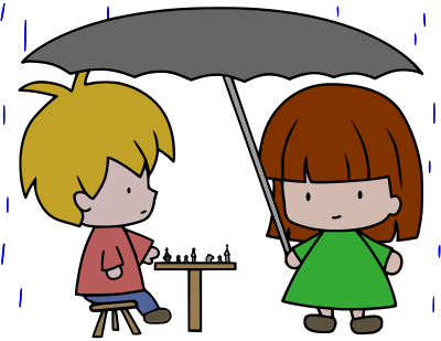 kids playing chess in the rain... colour version!