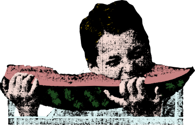 a kid taking a big bite of a watermelon