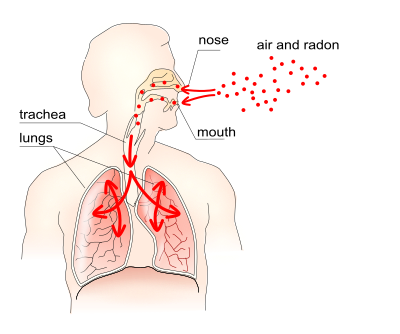 Radon entering human respiratory system