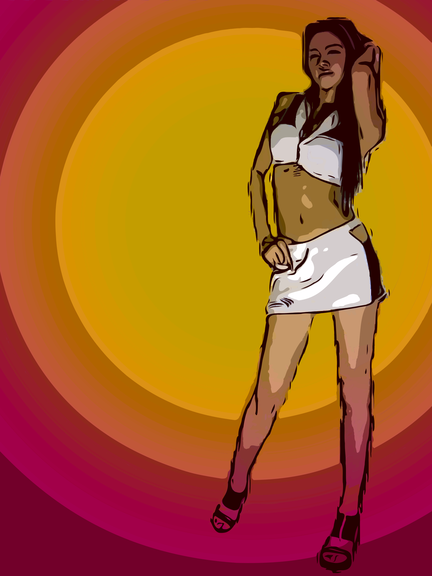 This clipart of a lady is based on a public domain photo released by hunkinelvis