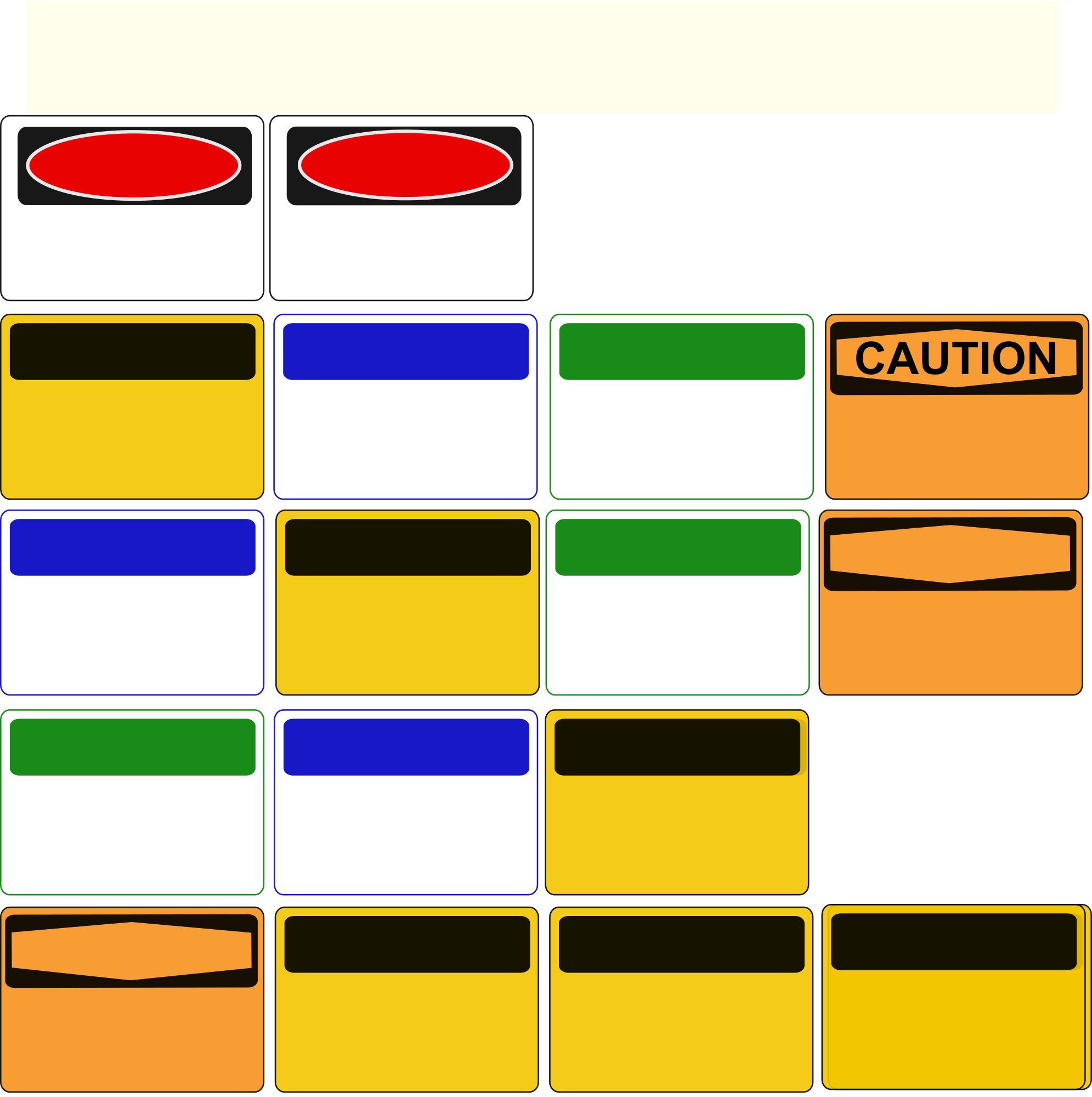 If you need any of these sign types: danger, warning, caution, or notice to display a custom message, you can use these to create it. The NOTICE, CAUTION, and WARNING signs each have alternate forms if you don't like any of the originals. Be sure to read the advisory at the top of the image, .