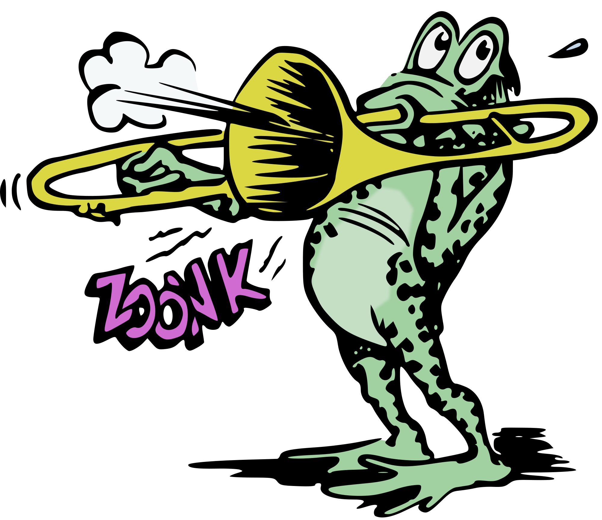 a colour version of this frog playing a trombone