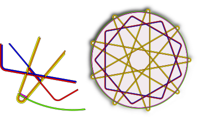 This is a further change to the bouncing lines design where full interlacing of the paths has been done as shown in the left hand enlarged section.