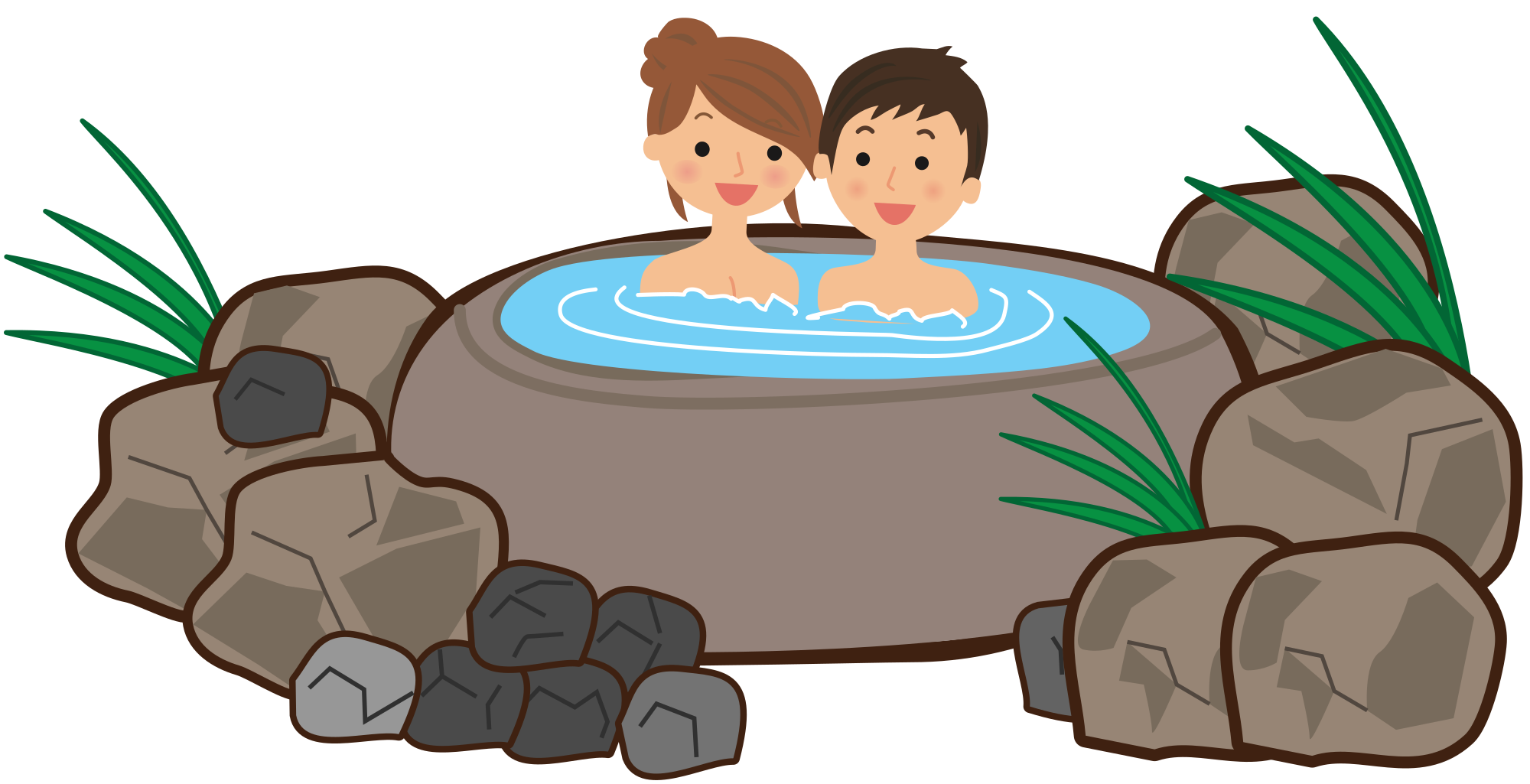 - onsen private family couple two people hot springs nature bathe man woman happy cartoon Japanese culture Japan remix+312056 remix+326203