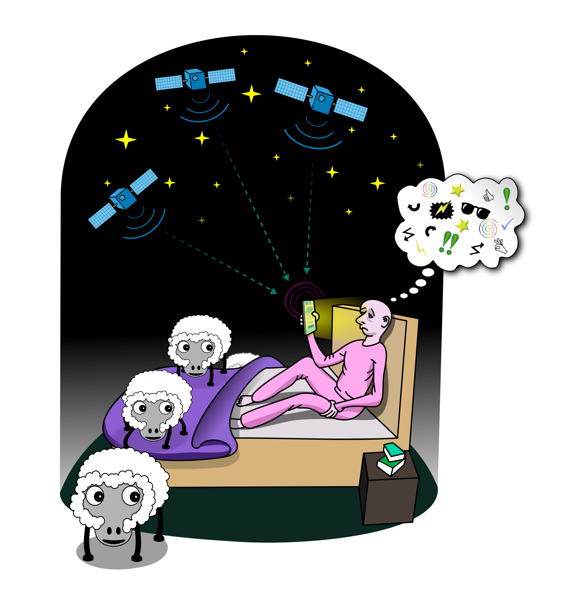 bed smartphone bedroom starlink sleeping Sleeplessness tired innovation fatigue procrastination jumping sheep remix+75145 remix+270678 remix+238219 Attention Deficit Disorder counting sheep