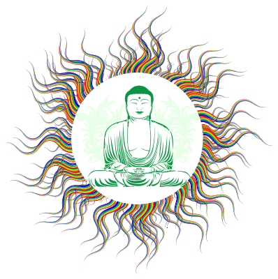 buddha in a rainbow sun blast
