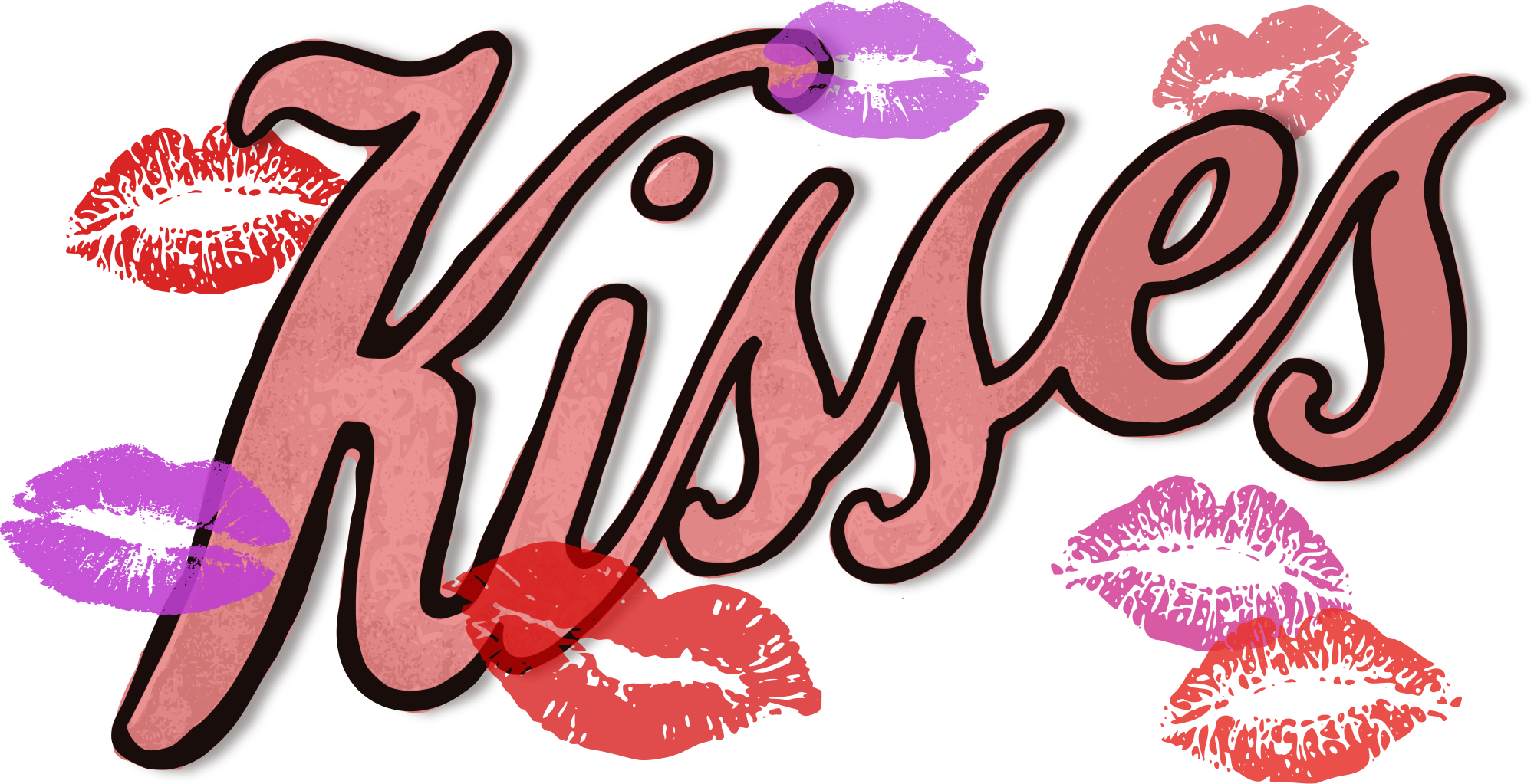 kisses text with lipstick lip kiss marks