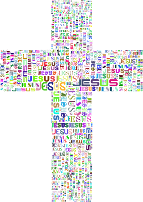 - Jesus Cross Typography Christianity Christ Divine Faith God Holy Messiah Prayer Catholic Christian Church Crucifix Religion Spirituality Decorative Ornamental Decoration Colorful Prismatic Chromatic Rainbow Gold