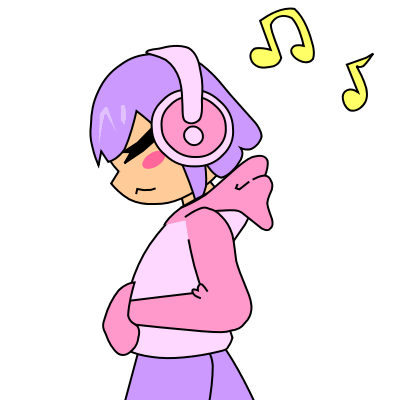 A small animation of a girl listening to music.
