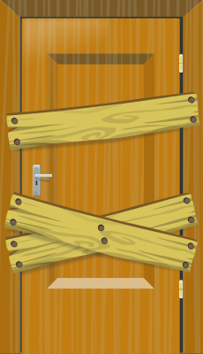 a door blocked, something scary behind it, be careful!