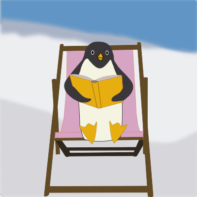 Manchot en train de lire sur une chilienne