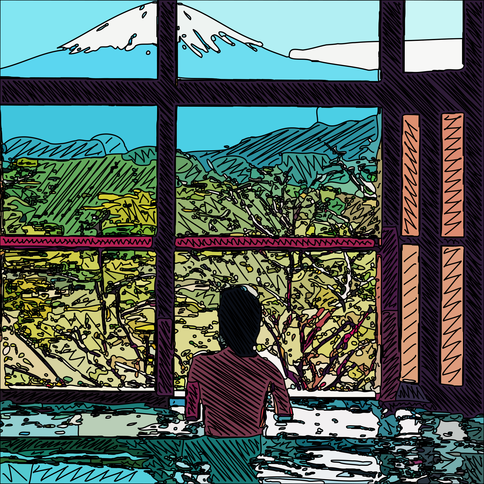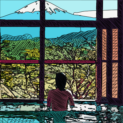 Onsen with a Fuji View - Drawing Remix