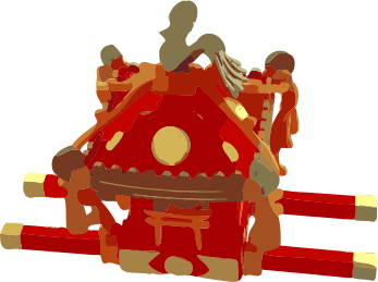 mikoshi are portable Shinto shrines carried around the neighborhood on festival days, often in summer. (Also known as a religious palanquin)