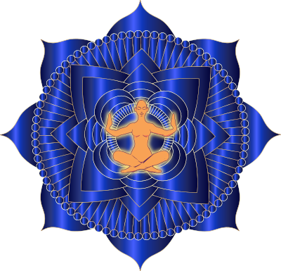 lady sitting cross legged in a blue lotus