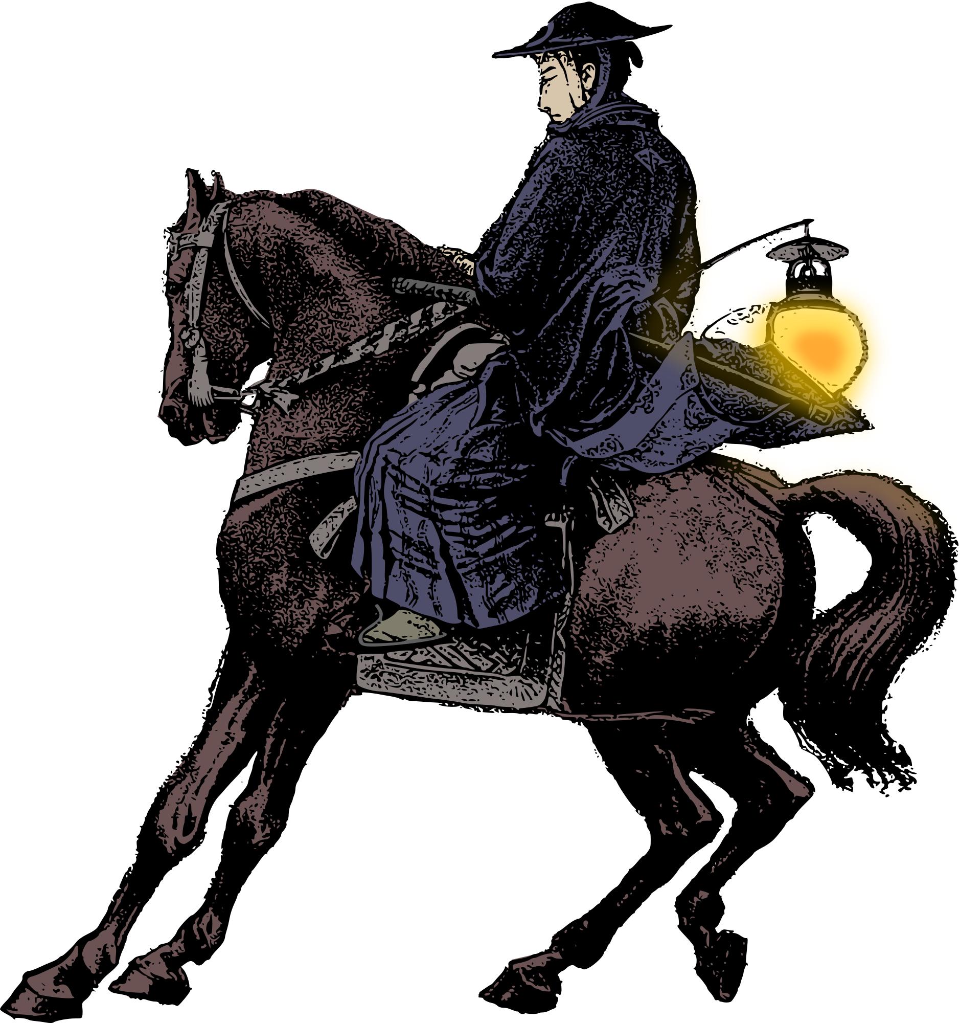 wow, it's been a decade since this clipart was uploaded already? Time waits for no samurai. This is a simple colour version of the samurai on a horse with a lantern.