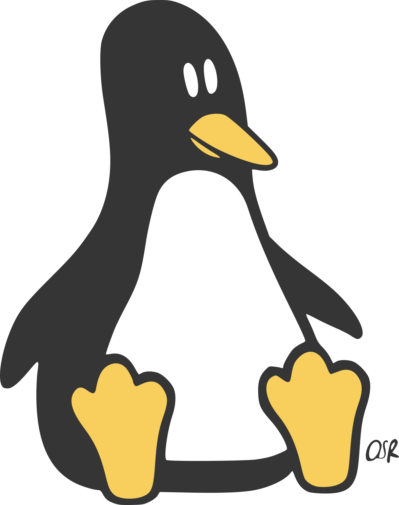 I created this my version funny and simply Tux for Linux in cartoon style.
