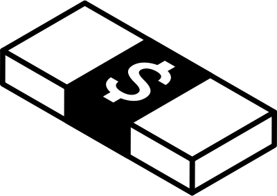 A bundle of dollar bills in black and white.