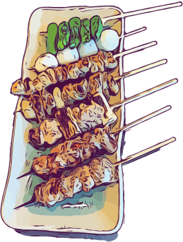 Yakitori, chicken etc skewers, is a classic Japanese cuisine