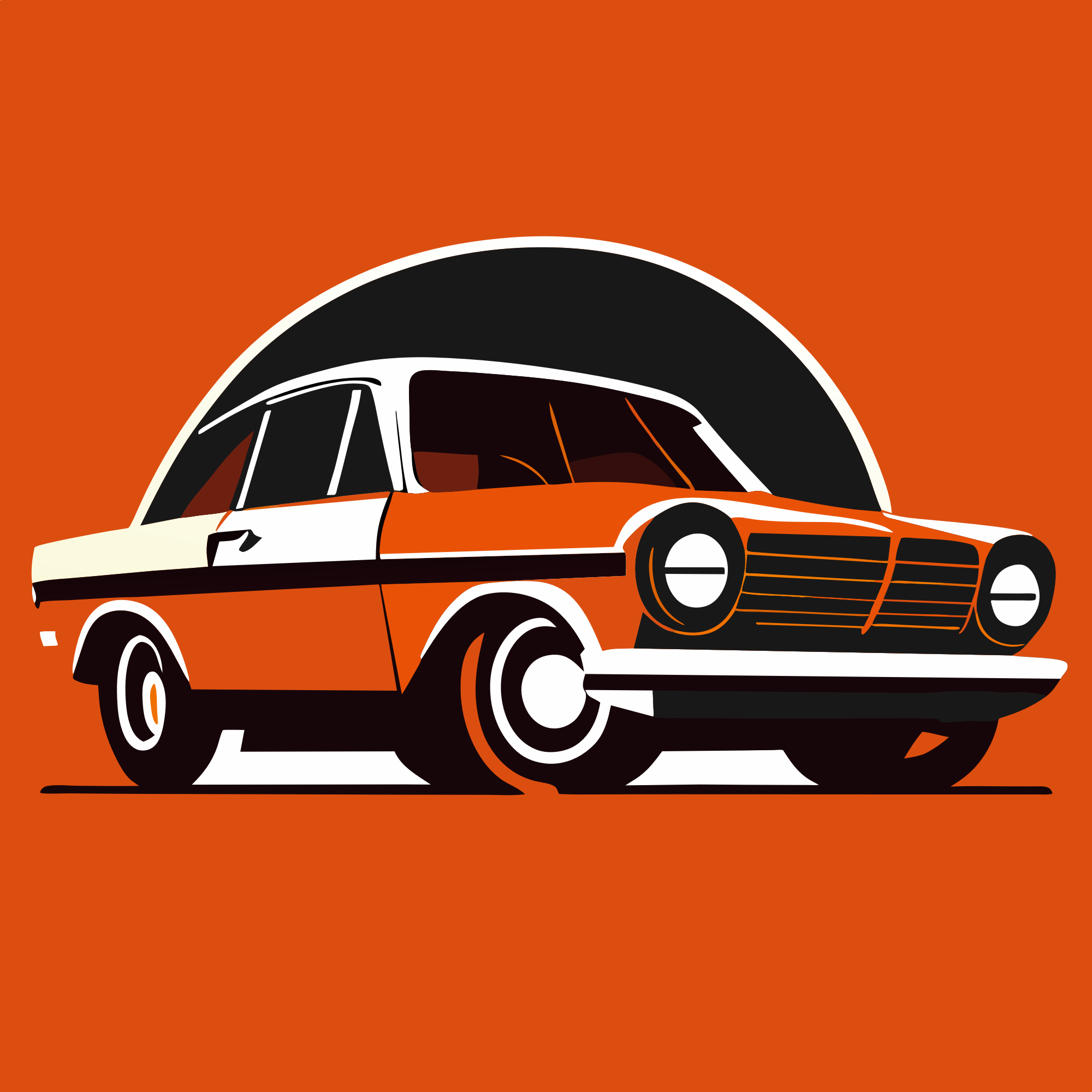 An ai-generated orange classic car.
