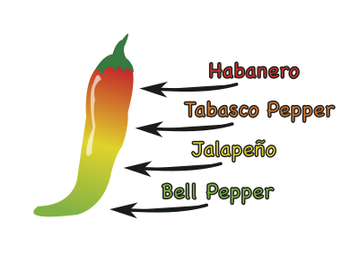 This of course isn't all the levels of the Scoville Scale of Chili spice levels, but it is to give an idea of the levels of hotness