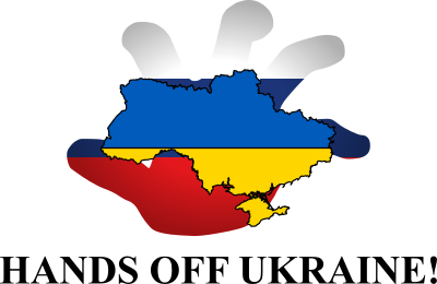 Remix of the "Hands off Iran" clipart, this time to denounce the Russian aggression on Ukraine.