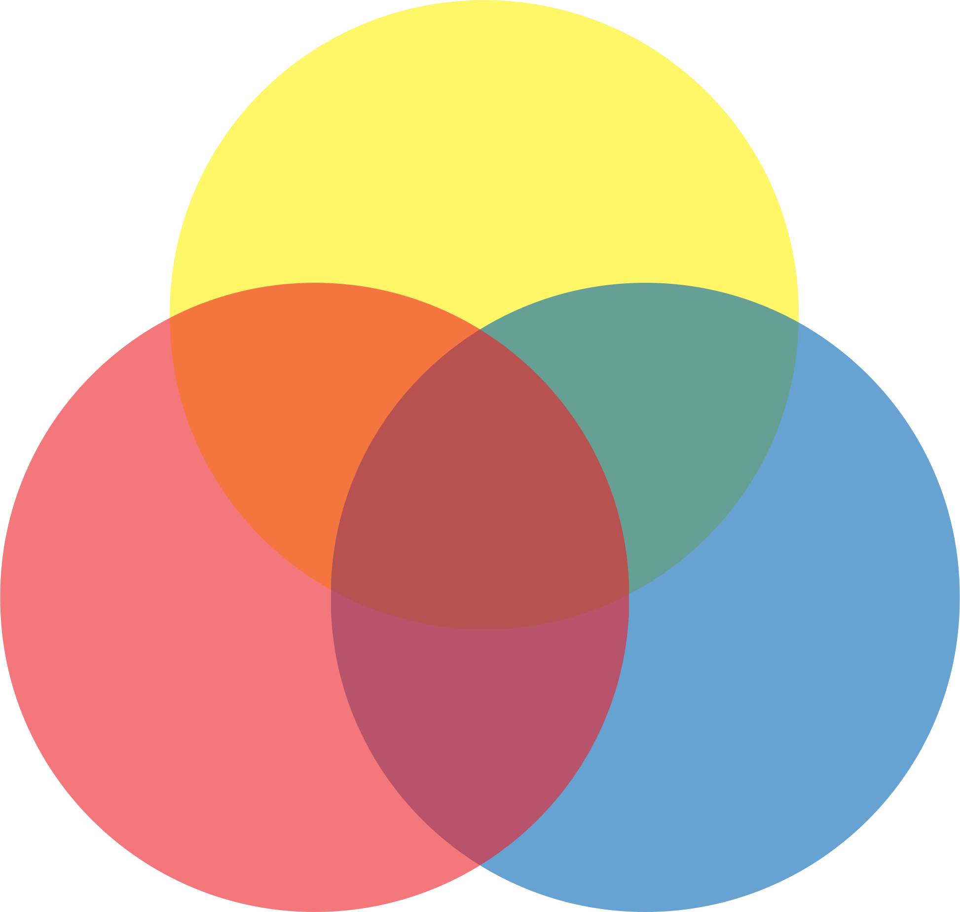 Venn diagram of 3 colors red yellow blue