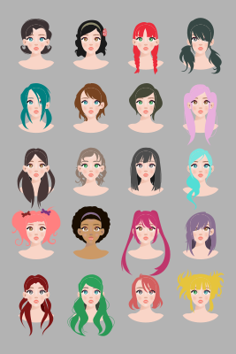 Pack of Hair Styles drawings for anime manga.