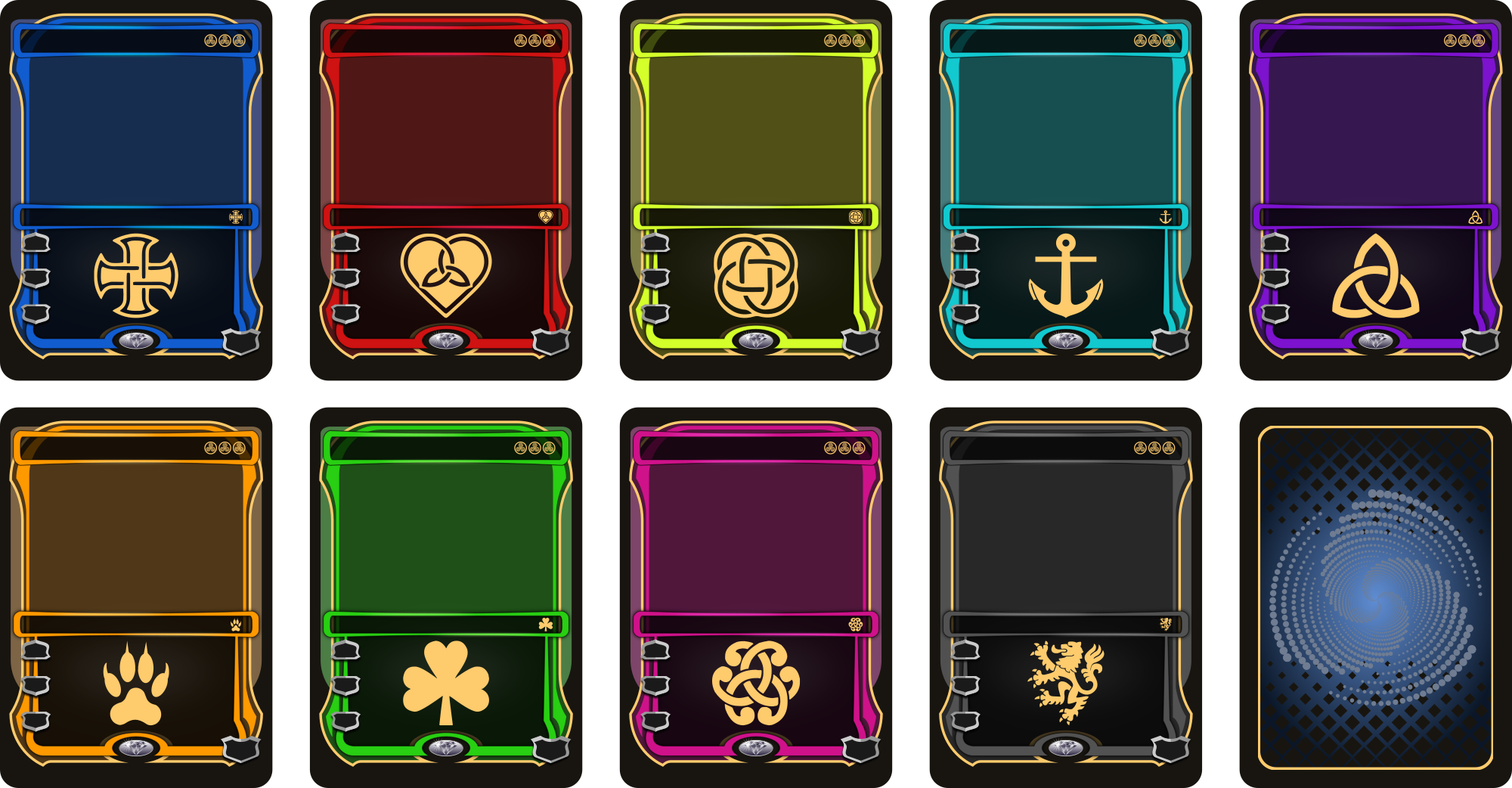 - cards playing cards game cards pattern pack collection style interfaces compilation symbols signs magic fantasy coat of arms tcg entertainment player video game trading card games gamer magic cards collectible collectable homemade