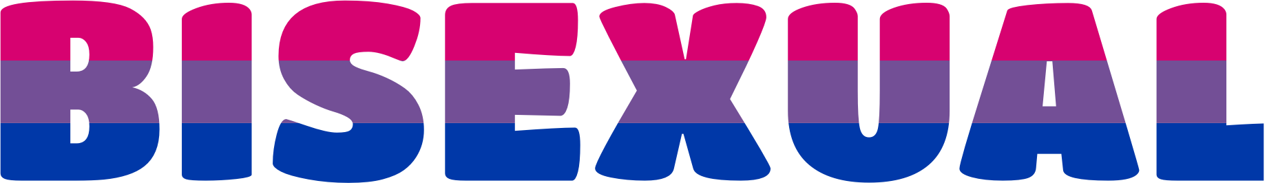 Bisexual wordart in the pride flag colors
