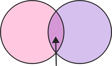 venn diagram with 2 circles overlapping in pink and purple with an arrow pointing to the intersection