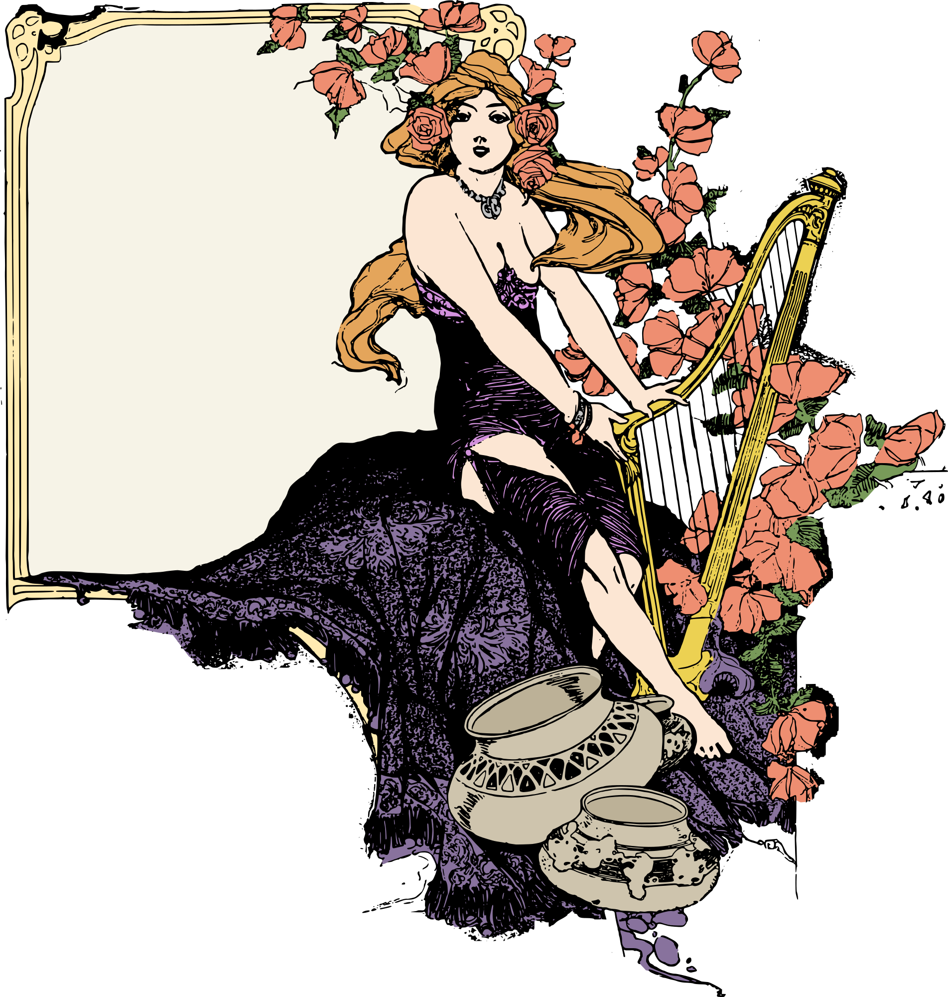 a colour version of this lady with a harp frame