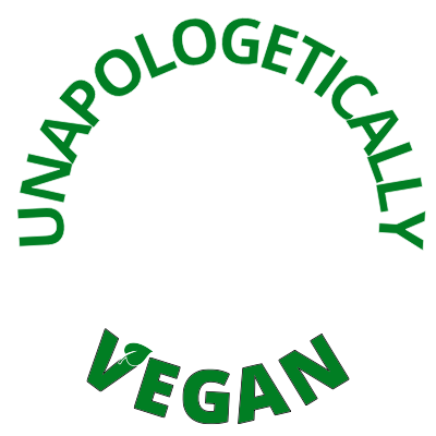 Unapologetically vegan round frame with 60 percent transparency for white circle, text in green