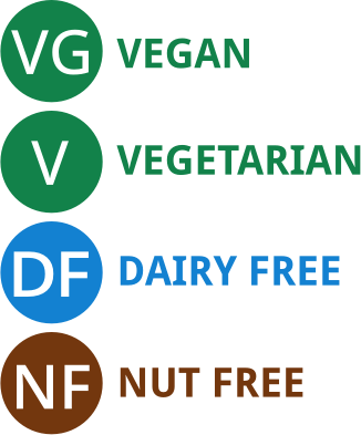 vegetarian vegan allergen dietary menu dairy free nut v symbol vg symbol remix+344550 remix+344552 remix+344549 remix+344864 df nf nuts dairy-free nut free