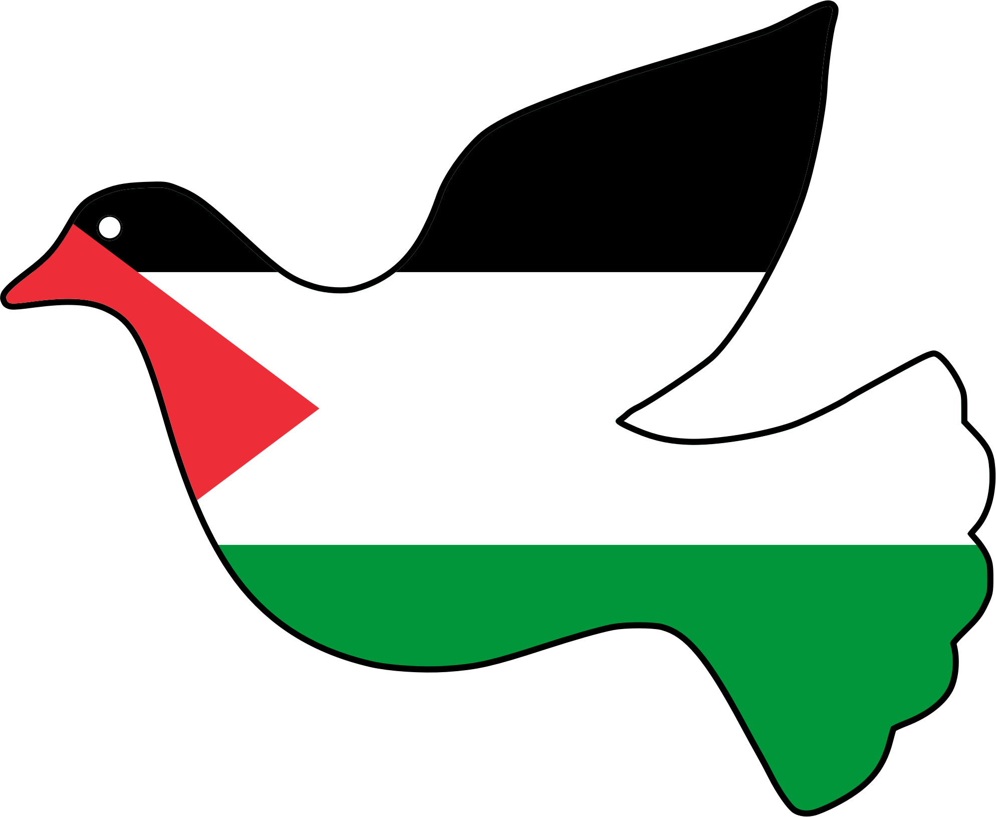 Palestine flag colors on a dove representing peace.