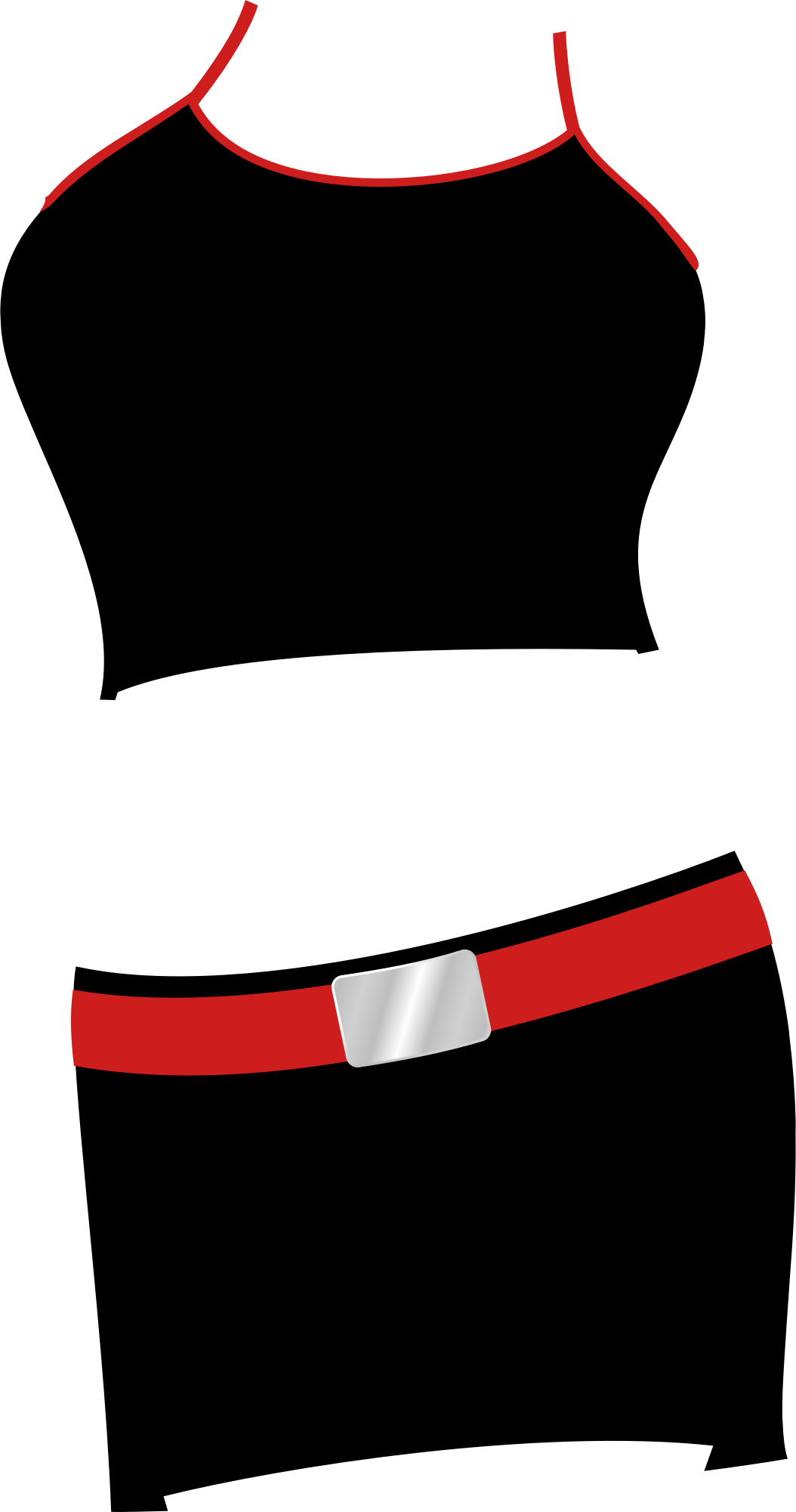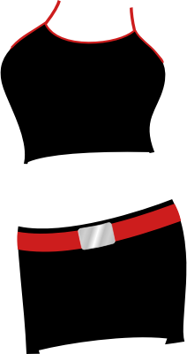 Two piece black lycra outfit with red belt. From publicdomainvectors