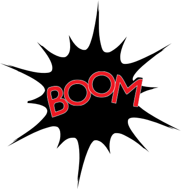 Black speech or sound effect with boom in red. Extracted from work by chrom72 on pixabay.