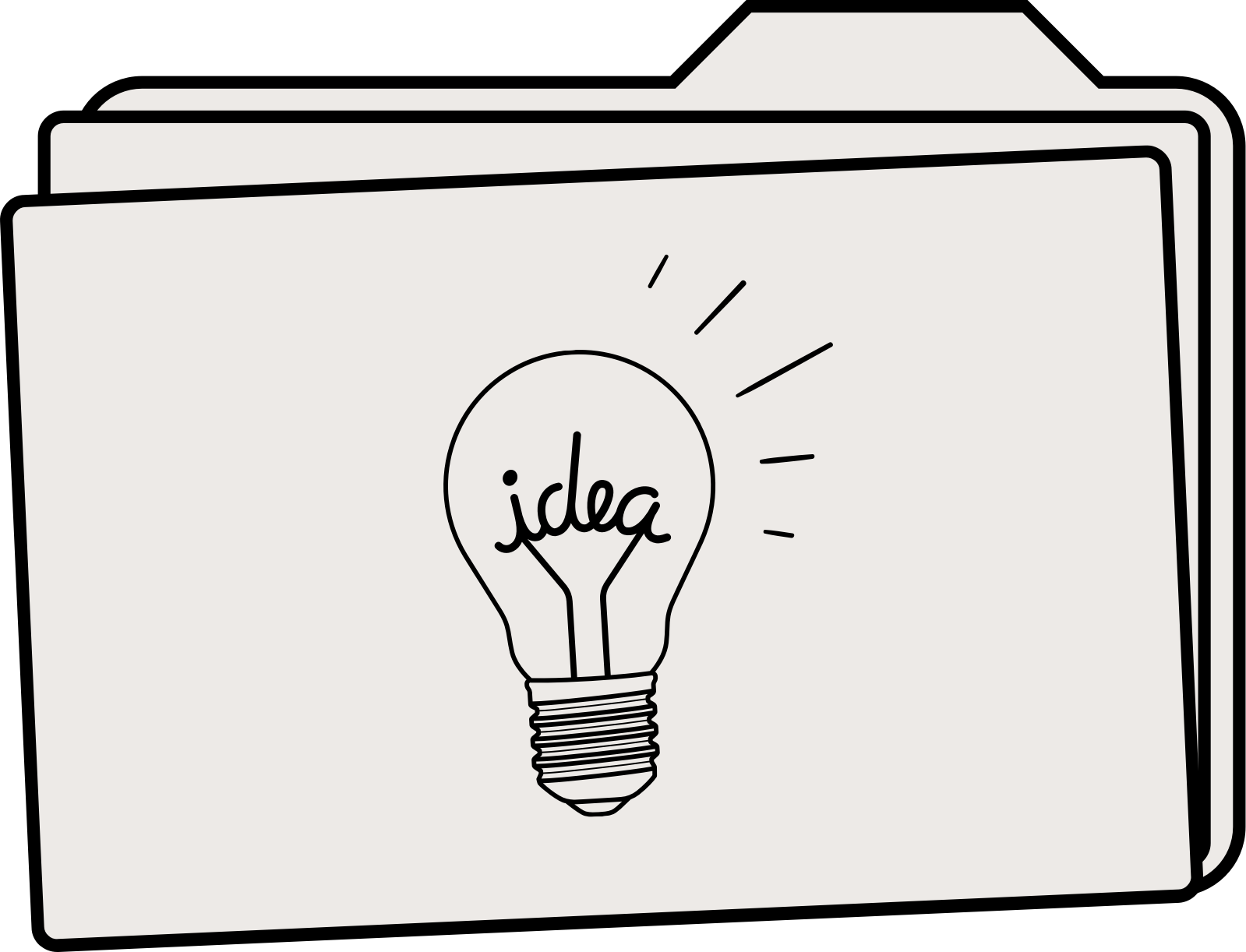 Minimal file folder in a neutral color with a light bulb and the word ideas.