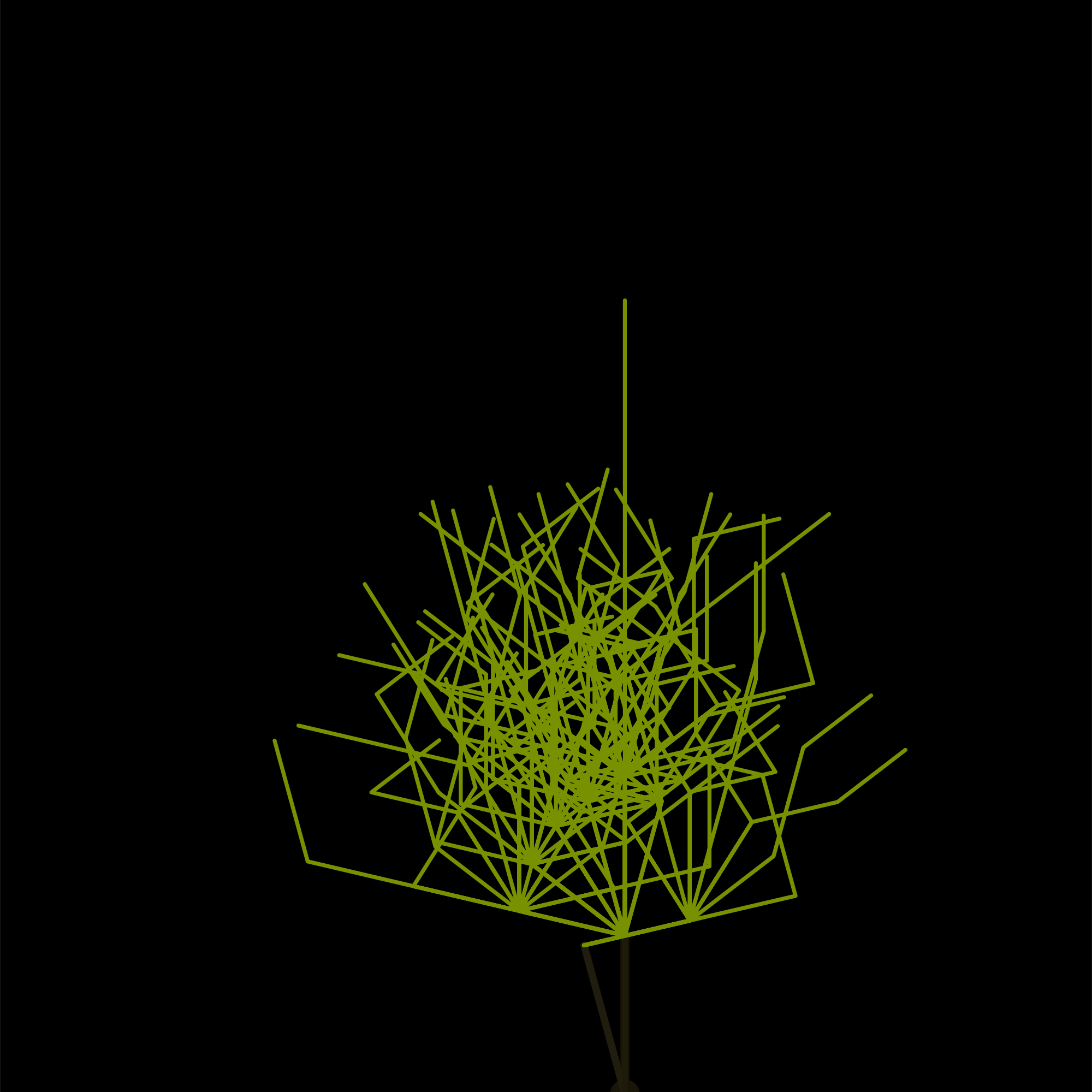 Somehow we need to show our failures, (temporary ones hopefully). So this is a 'time tree' - plotting time values from 30 seconds this morning. It uses a special data structure to make the trunk thicker as more branches are added. except, as you see, it doesnt. recursive things are hard to debug; no matter how much you treat the foundation, bugs still get in :-) we keep at it tho, dont we ? listen to laura marling, 'failure' or norah jones, 'humble me' for more phil-osophy as told by better artists...