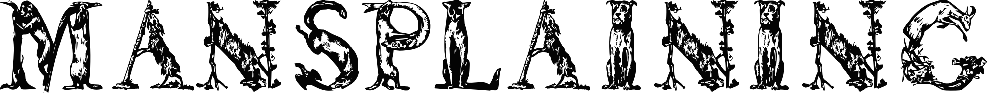 Letters Animales Font by Manfred Klein spelling out "mansplaining".