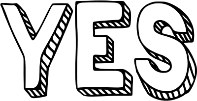 Yes white 3D word art block text