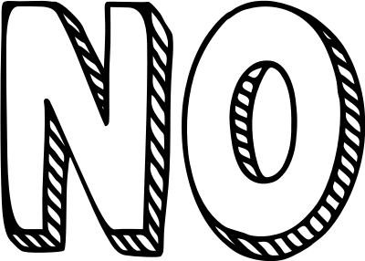 "NO" in 3D text. Uses the zuka doodle freeware font by cove703 with white fill for the front of the text (not transparent), back outline and very light orange shaded edges to make it stand out more.