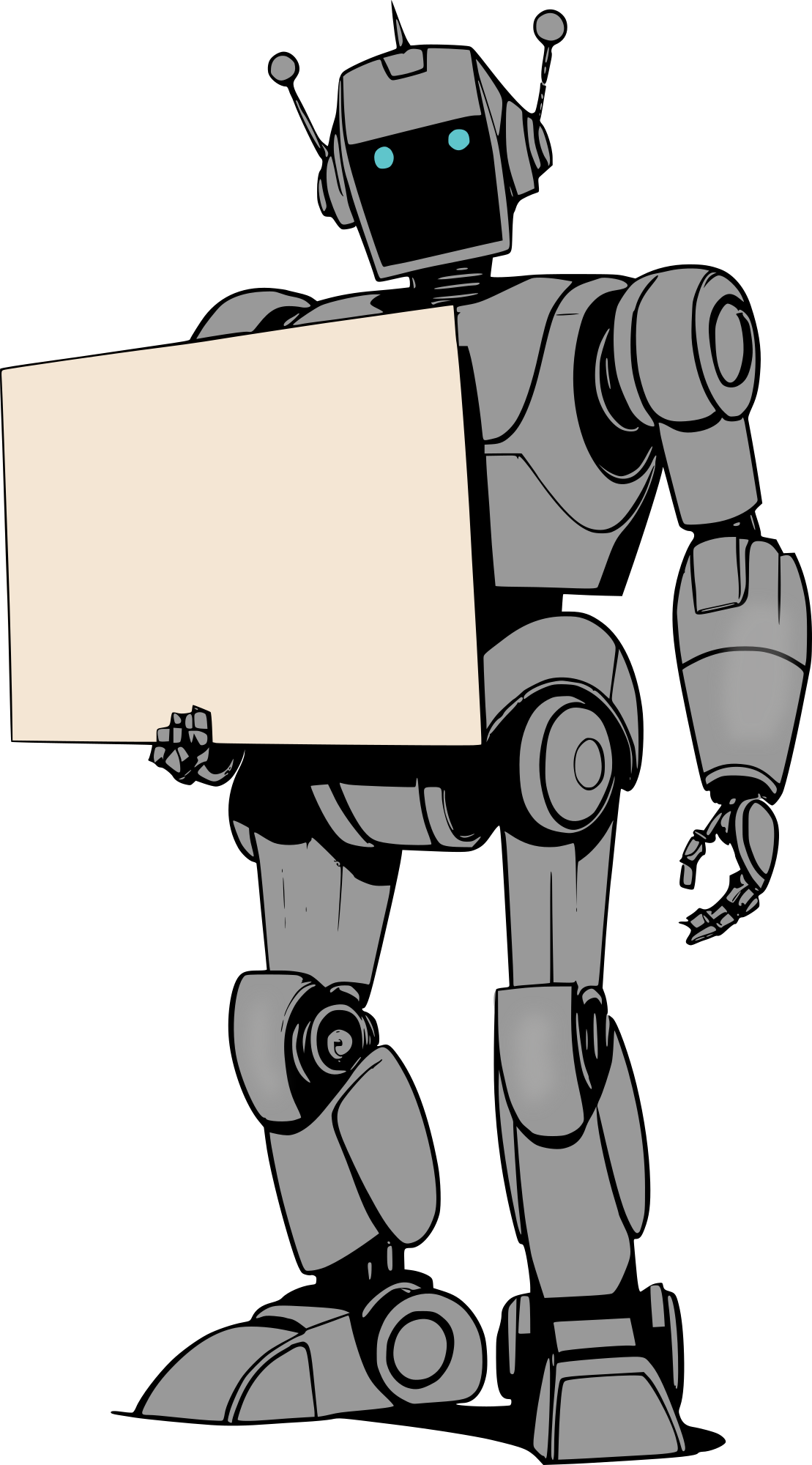 a colour version of this robot holding a sign