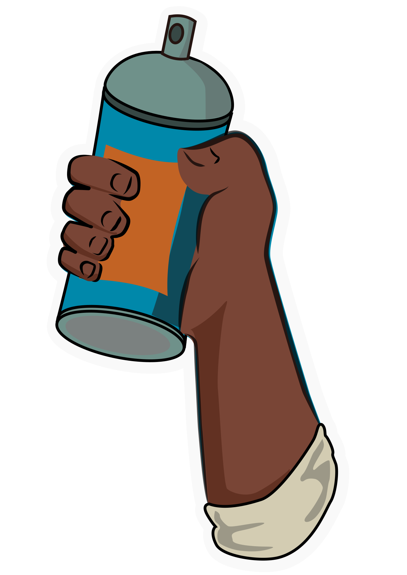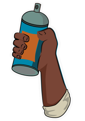 A hand and arm holding a can of spray paint.
