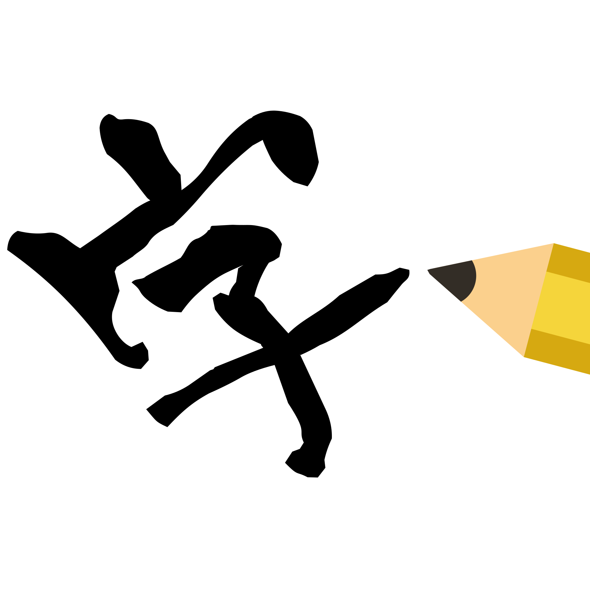 I just followed mostly what was in the original. It seems clear the original was suppose to be a pencil writing this character, although it's not typical to use pencils with character work, maybe it symbolizes something so I went with it