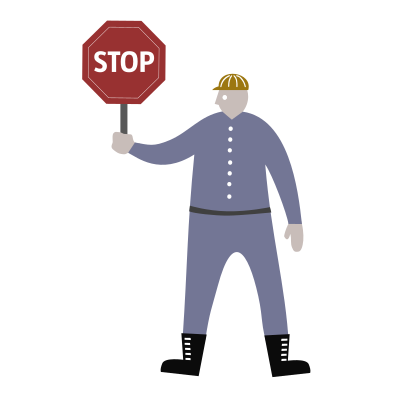 Construction worker with a stop sign, March-April 2009